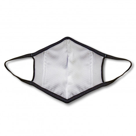 Comfortable face mask which can be reused by hand washing it in warm water. It provides protection with three layers of material manufactured from 150 GSM, 100% polyester single jersey with 150 GSM ultra-mesh lining. The mask has matching elastic bias tape ear loops that hold the mask securely in place. The front panels can be branded with stunning full-colour sublimation print, and one size will fit most people. This face mask is manufactured for use in the home or for recreational or occupational use and must be ordered in multiples of 100pcs. Personalisation e.g. names and numbers are available free of charge. A production lead time of 35 working days applies to this product by air freight and larger orders can be sea freighted on request to reduce the freight cost. Custom labels are available upon request free of charge.