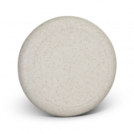 16cm recreational flying disc made from a blend of natural wheat straw fibre and polypropylene.