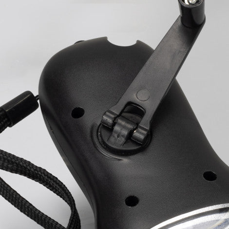 - Rechargeable torch with a crank mechanism and solar charging,Matte black with silver trim,Slide on-off switch
