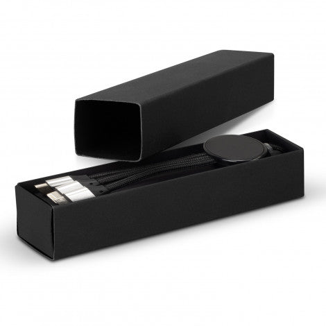 - Micro-B USB and Lightning,A built-in LED lights up the engraved branding when in use,Braided cable for added durability,Presentation: Black gift box
